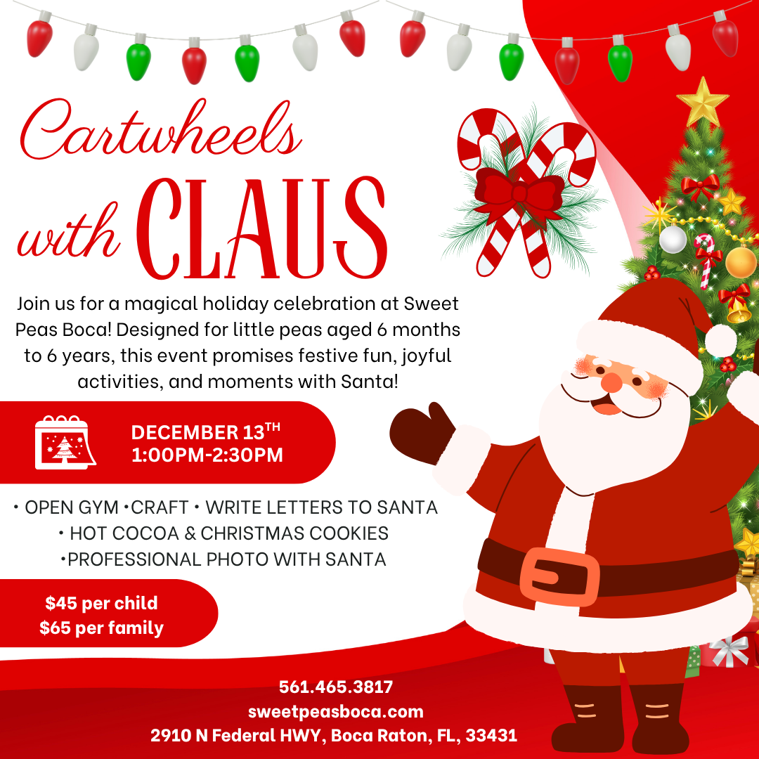 Our holiday celebration will include open gym time, a holiday craft, writing letters to Santa, and of course, a visit and professional photo with Santa himself! Families can also enjoy delicious hot cocoa and Christmas cookies as we celebrate the most wonderful time of the year together.