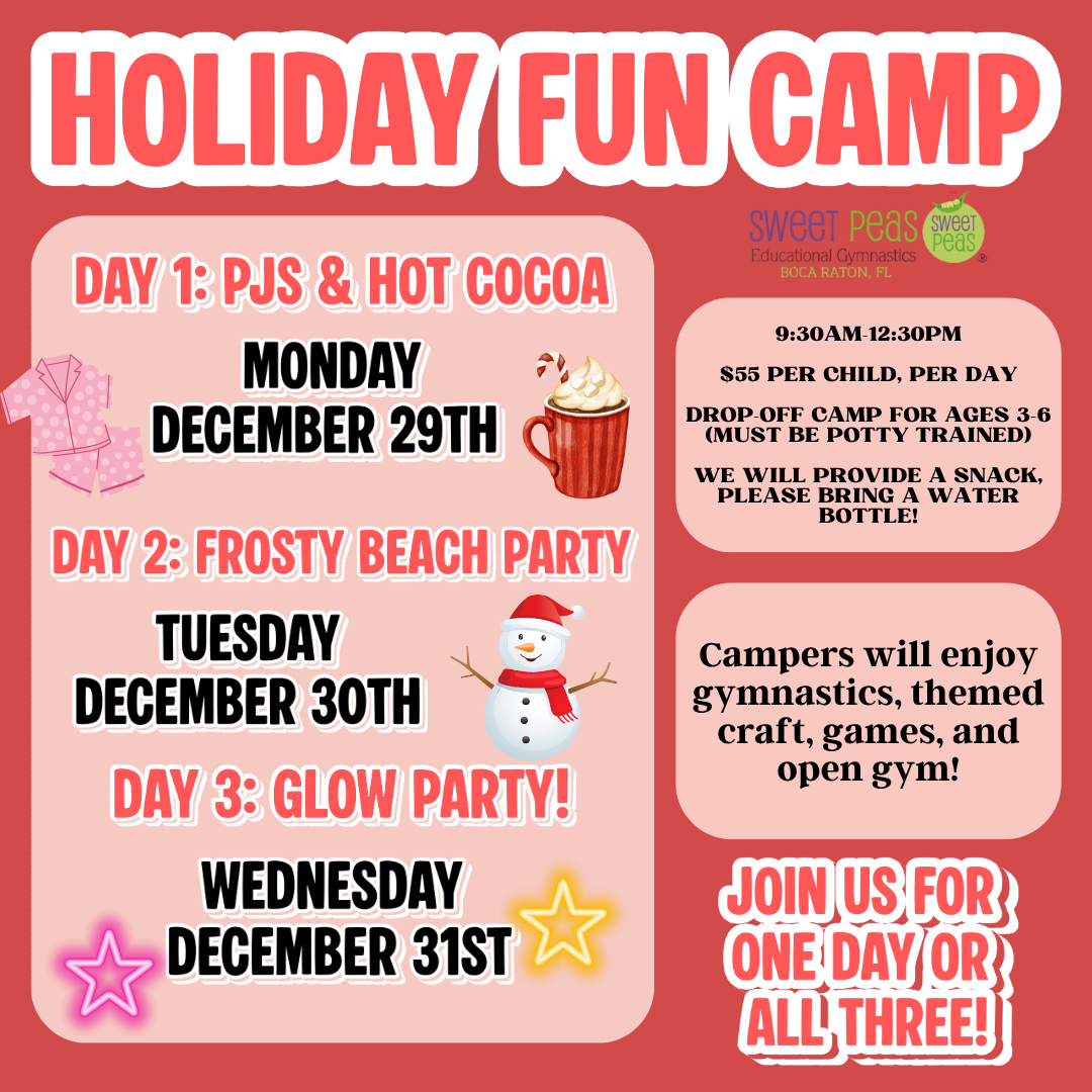 Three festive mornings of gymnastics, crafts, games, and open gym!